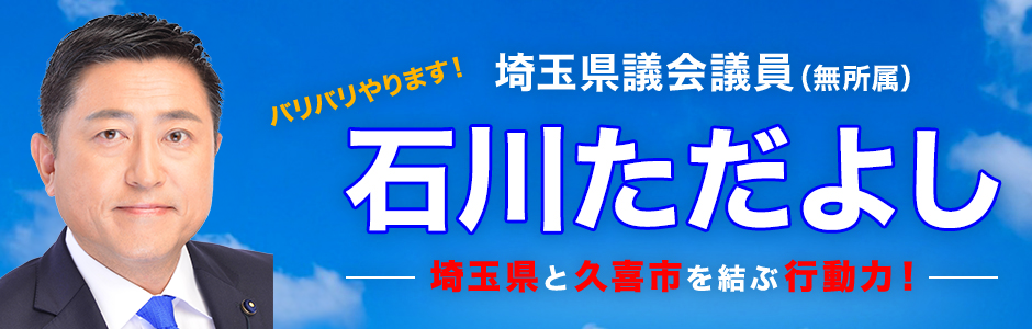 バリバリやります! 埼玉県と久喜市を結ぶ行動力!埼玉県議会議員 石川ただよし ~埼玉県と久喜市を結ぶ~